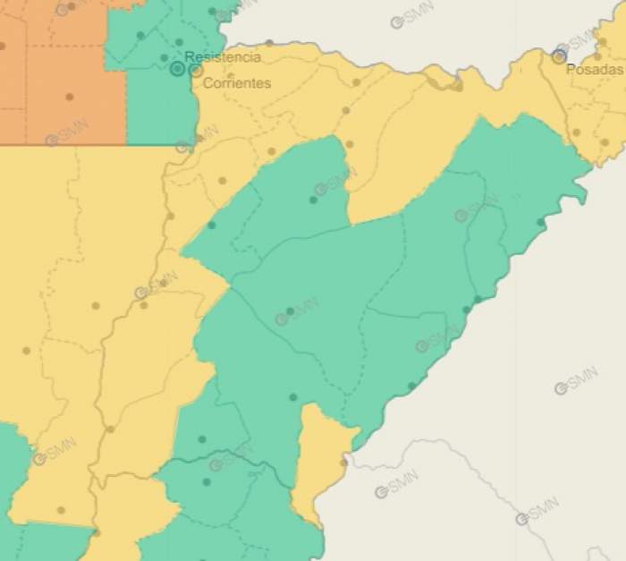 La advertencia del Servicio Meteorológico Nacional rige para este martes 28 de mayo. Afecta a la ciudad de Corrientes y varias localidades del interior.