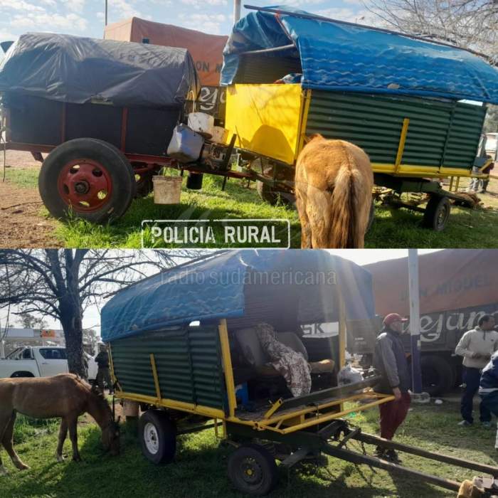 En el peaje de Riachuelo sobre Ruta Nacional 12, se detectó una volanta y un carro tirados por tres caballos en evidente estado de desnutrición, deshidratados y exhaustos. Los animales arrastraban a cinco hombres con pertenencias y elementos de campamento rumbo a Empedrado.